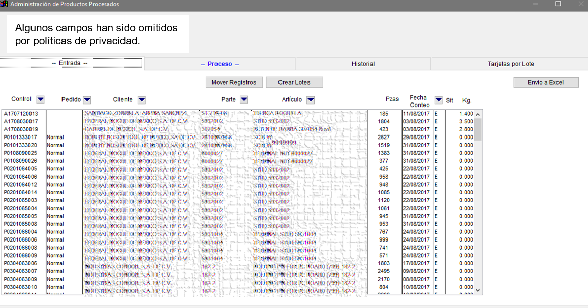 entradas y salidas de material. Esto lo hace sin perder la rastreabilidad del material gracias a las tarjetas de identificación que son impresas