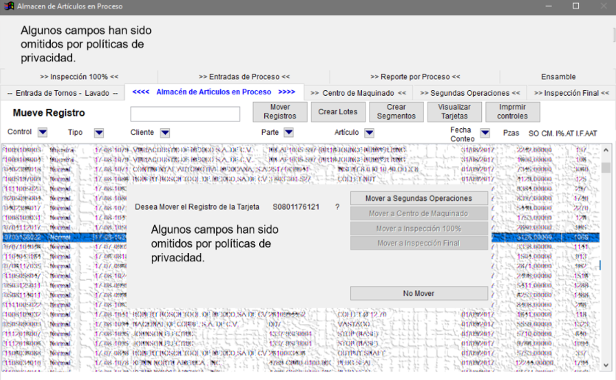 podrá enviarlo a la siguiente área dependiendo del flujo que se halla definido para la pieza.